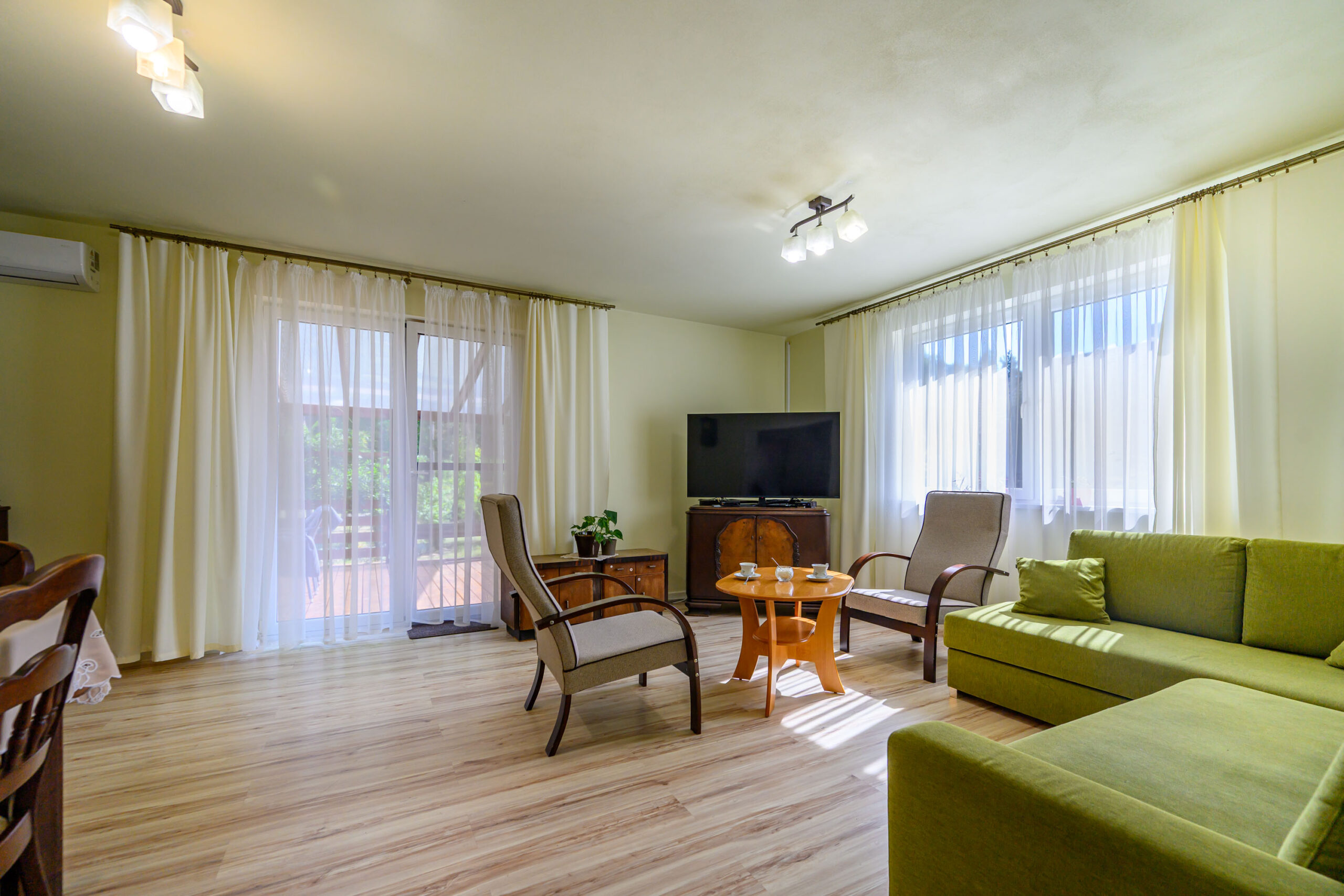 • Salon z wyjściem na taras i ogród